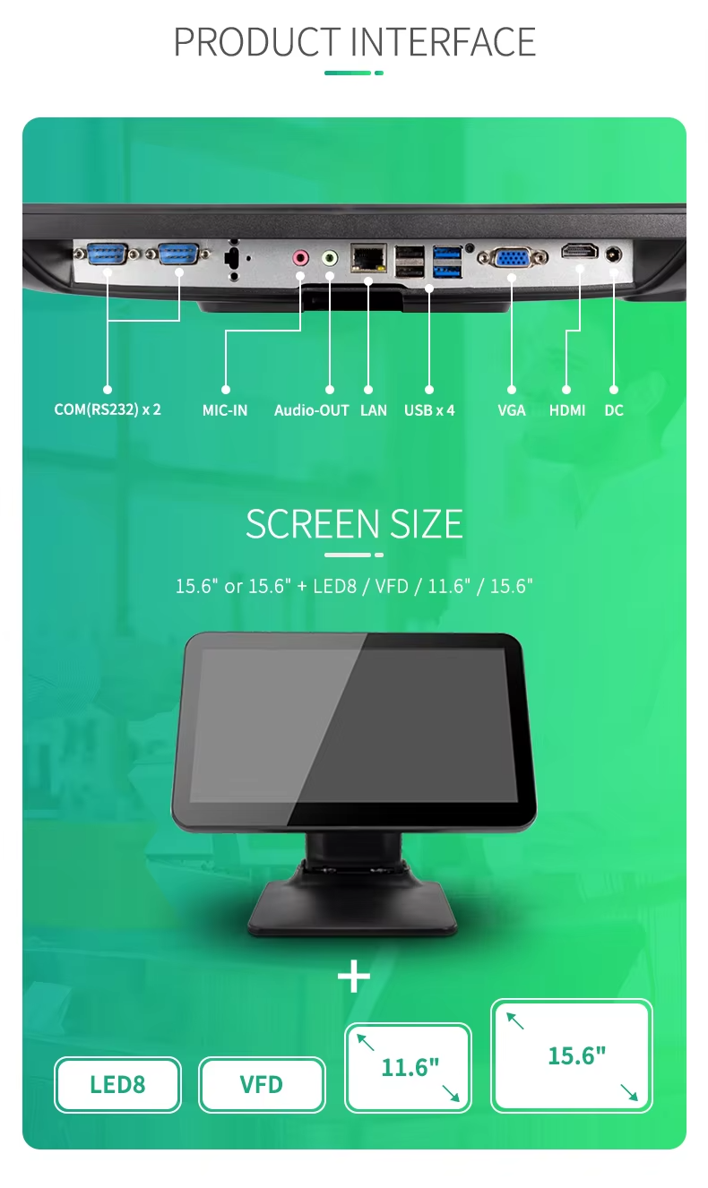 *Client Display:LED8N,or 2 Lines*20 vfd/9.7inch/10.1inch/11.6inch/15inch(optional)